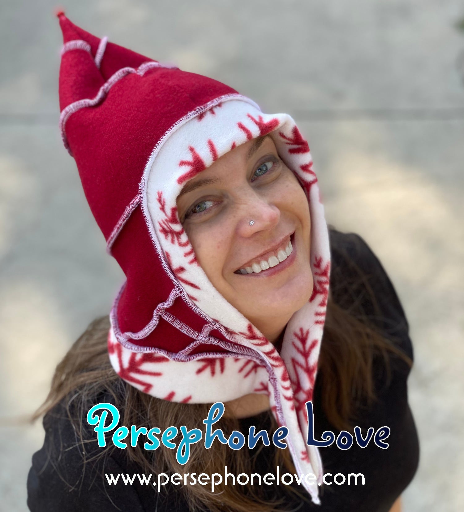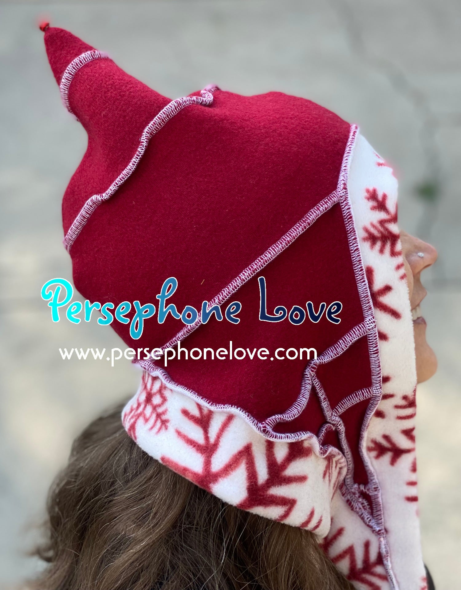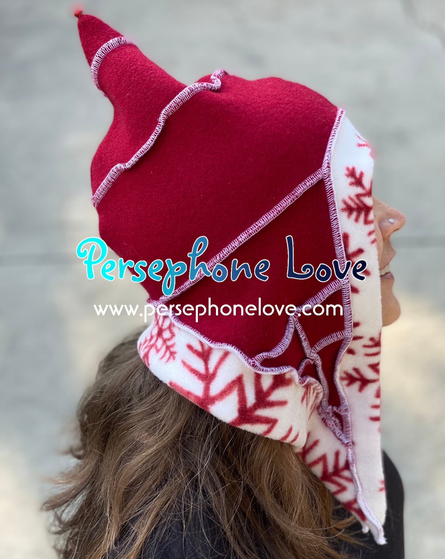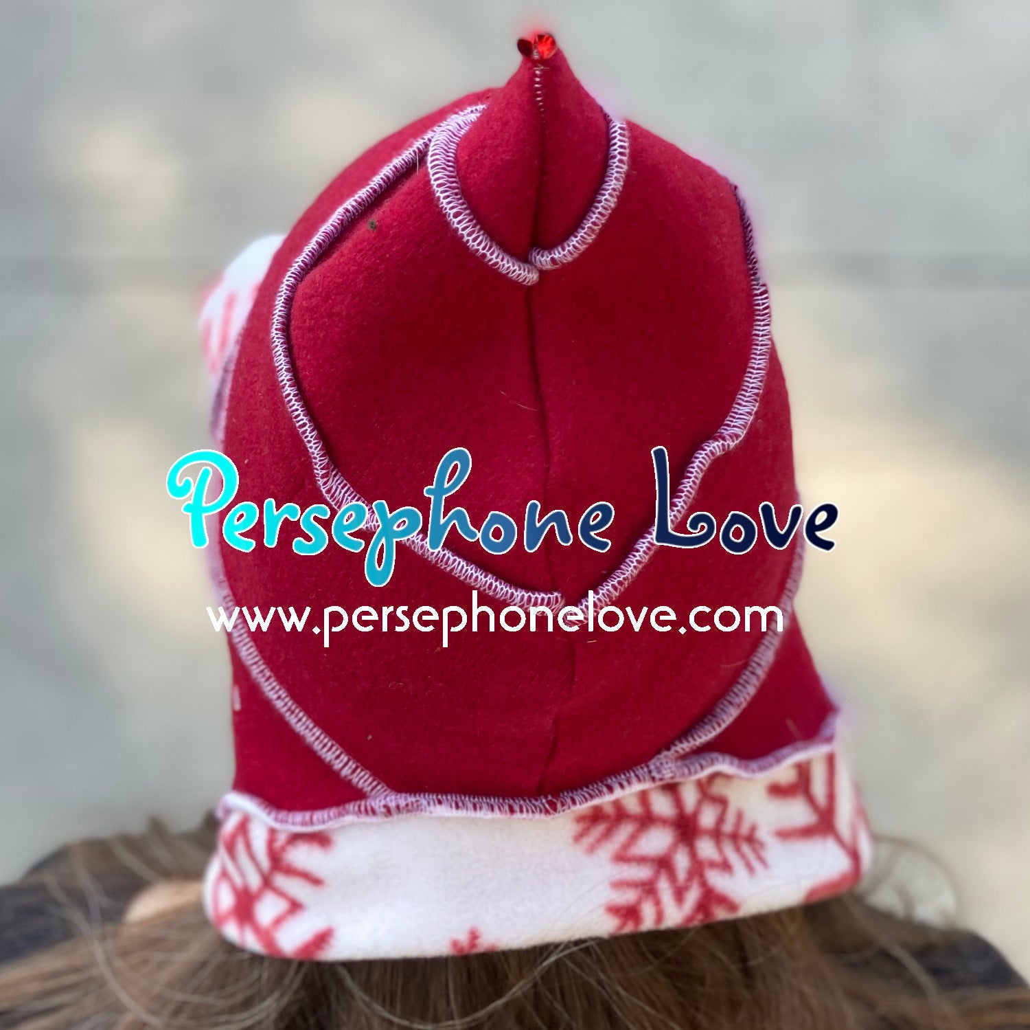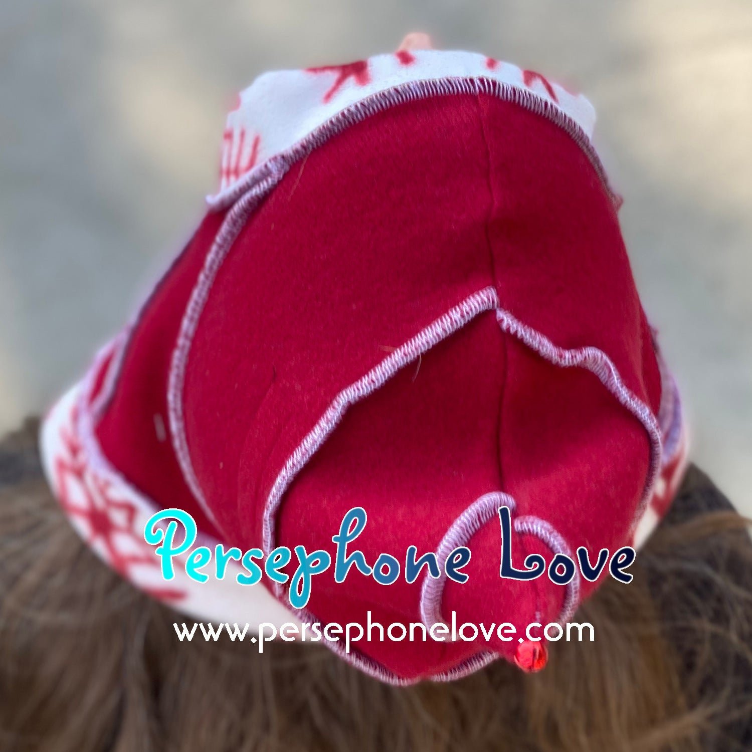Katwise inspired red white snowflake felted 100% cashmere/fleece recycled sweater elf hat-1442